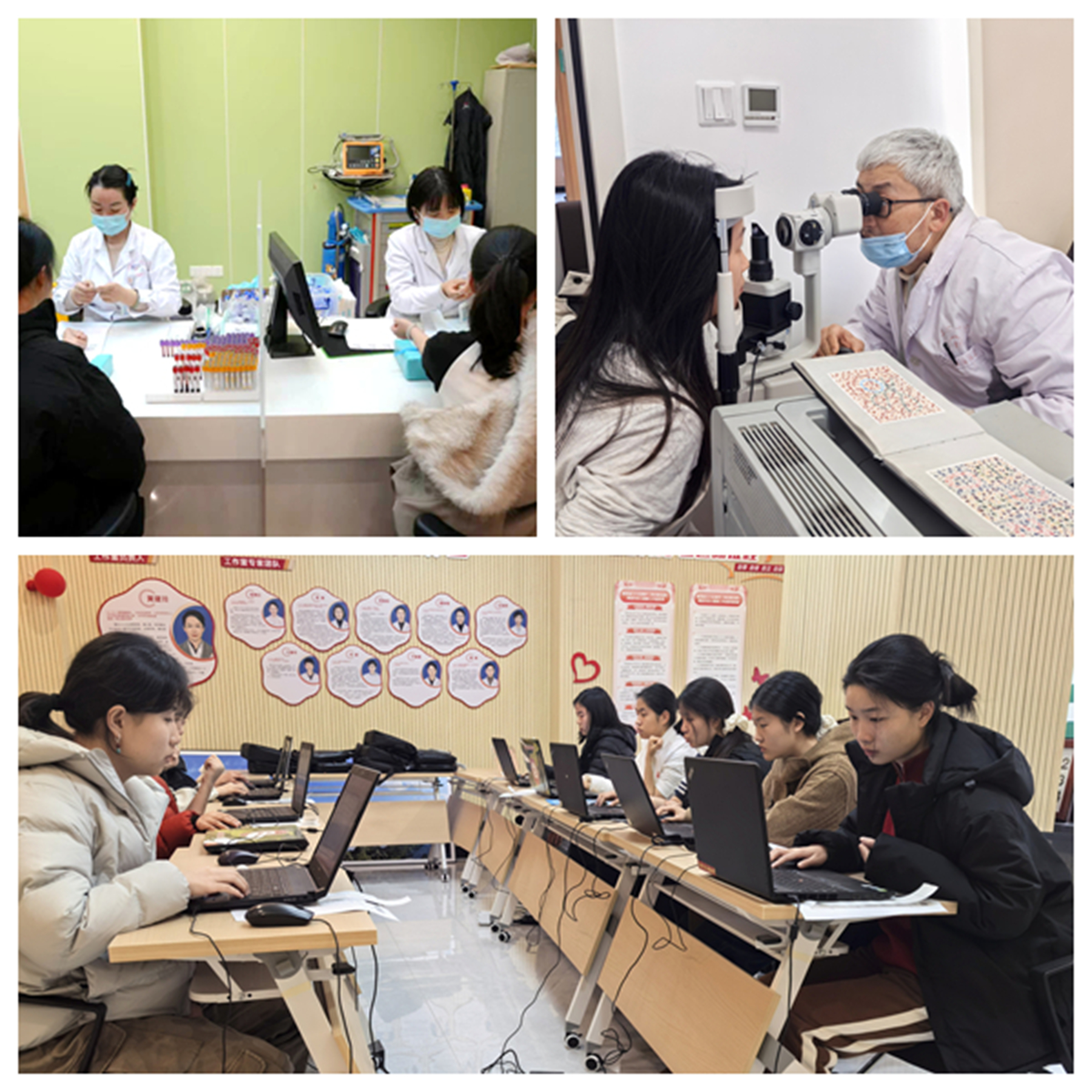 检中,医护人员询问并查验应征女青年既往病史、近期身体状况等情况。应征女青年分批进行相关项目检查。