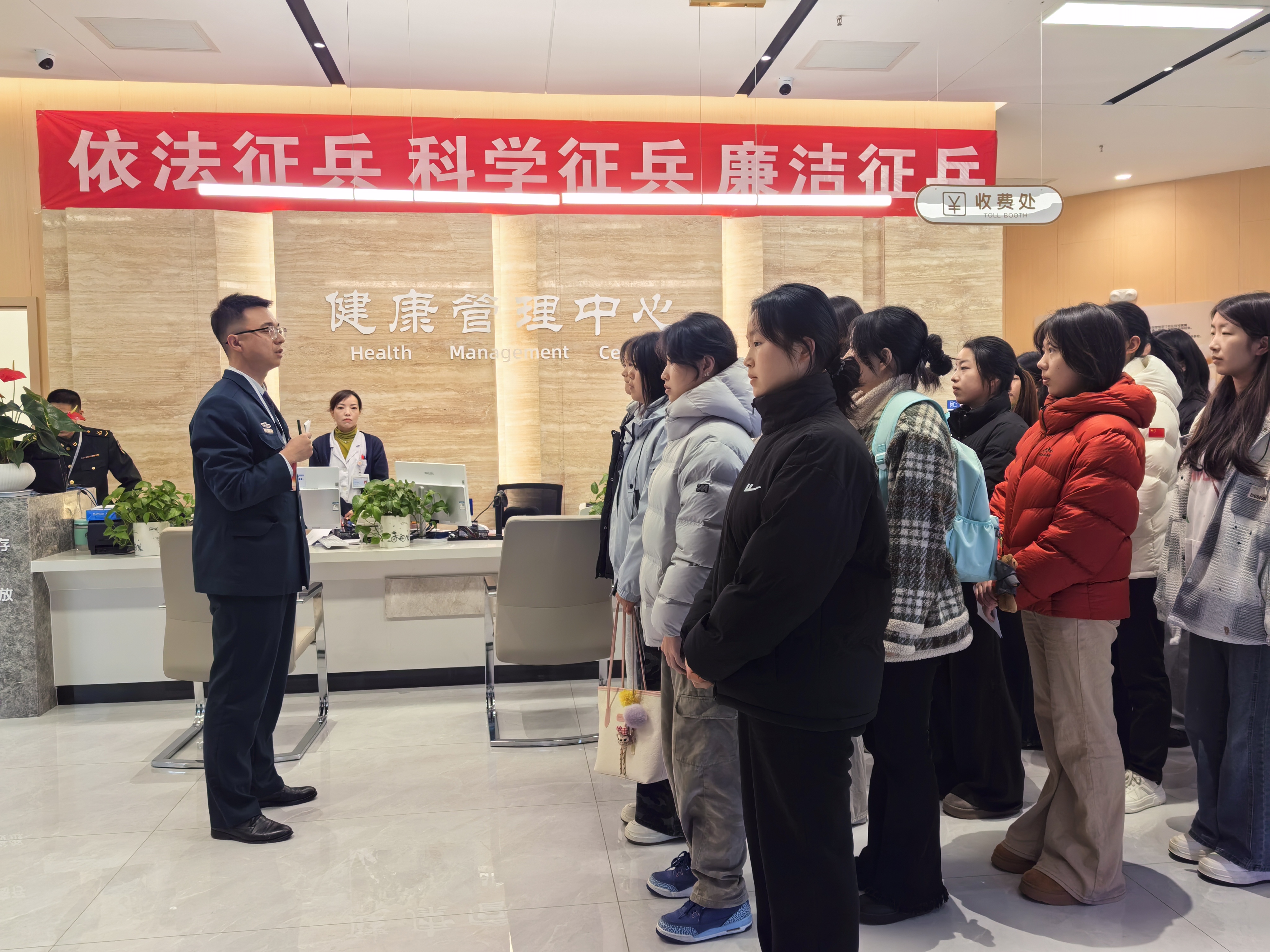 2月26日,3201医院健康管理中心按照市征兵办公室统一部署,完成2026年度上半年女兵征集体检工作。来自全市各县(区)的应征女青年在该中心接受体检。