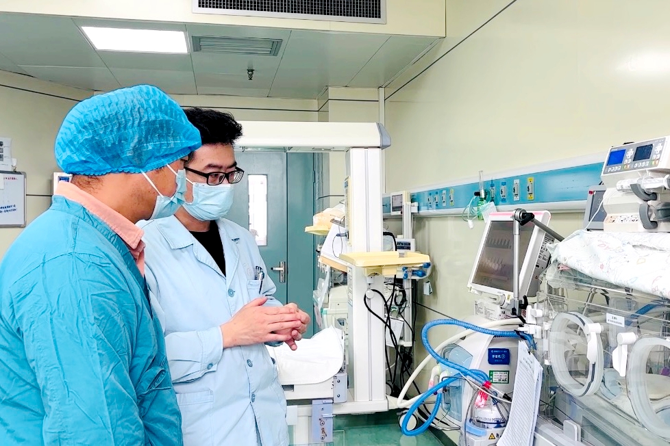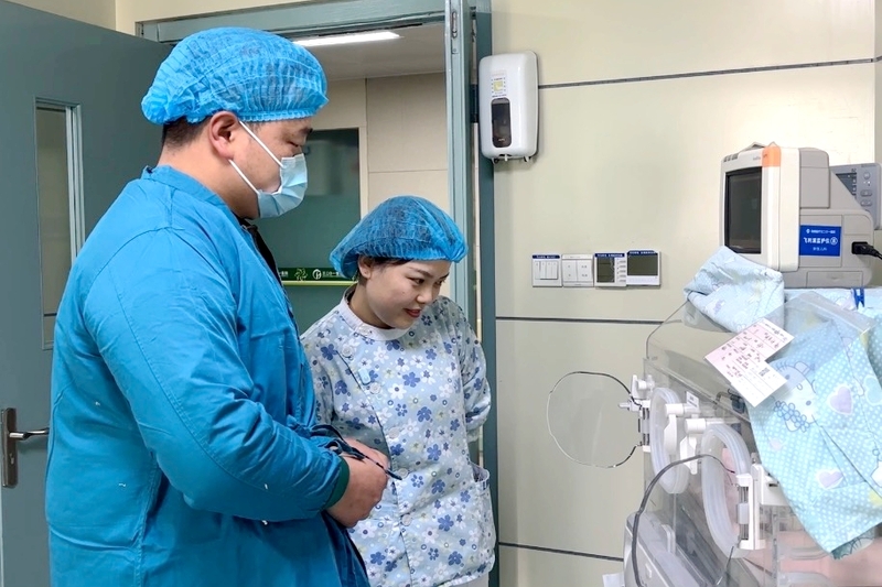 下午15:00,第一位探视的家长经过身份核验,在医护人员协助下穿戴好隔离衣、口罩、帽子,随后进入病房见到了暖箱中的宝宝。主管医生现场介绍了宝宝的奶量变化、体重增长和治疗进展情况。探视过程中,家长隔着暖箱看望宝宝,医护人员全程陪同,解答家长疑问。