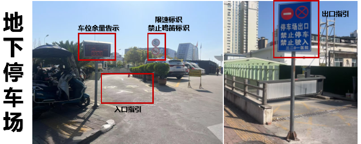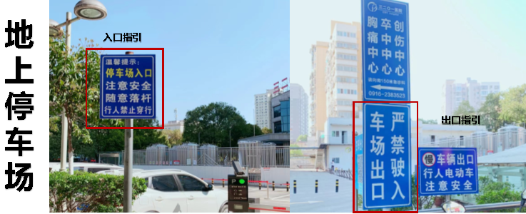 医院急诊车辆入口与出口指示、院内停车场与总车位数 (一)1号楼急诊人防地下车库入口限速标识1个、禁止鸣笛标识1个,出口指示标识1个。(二)地上停车场入口指示标识1个、出口指示标识1个。(三)院内有地下和地上两个停车场,车位总数147个(地下停车场车位总数132个;地上停车场车位总数15个)