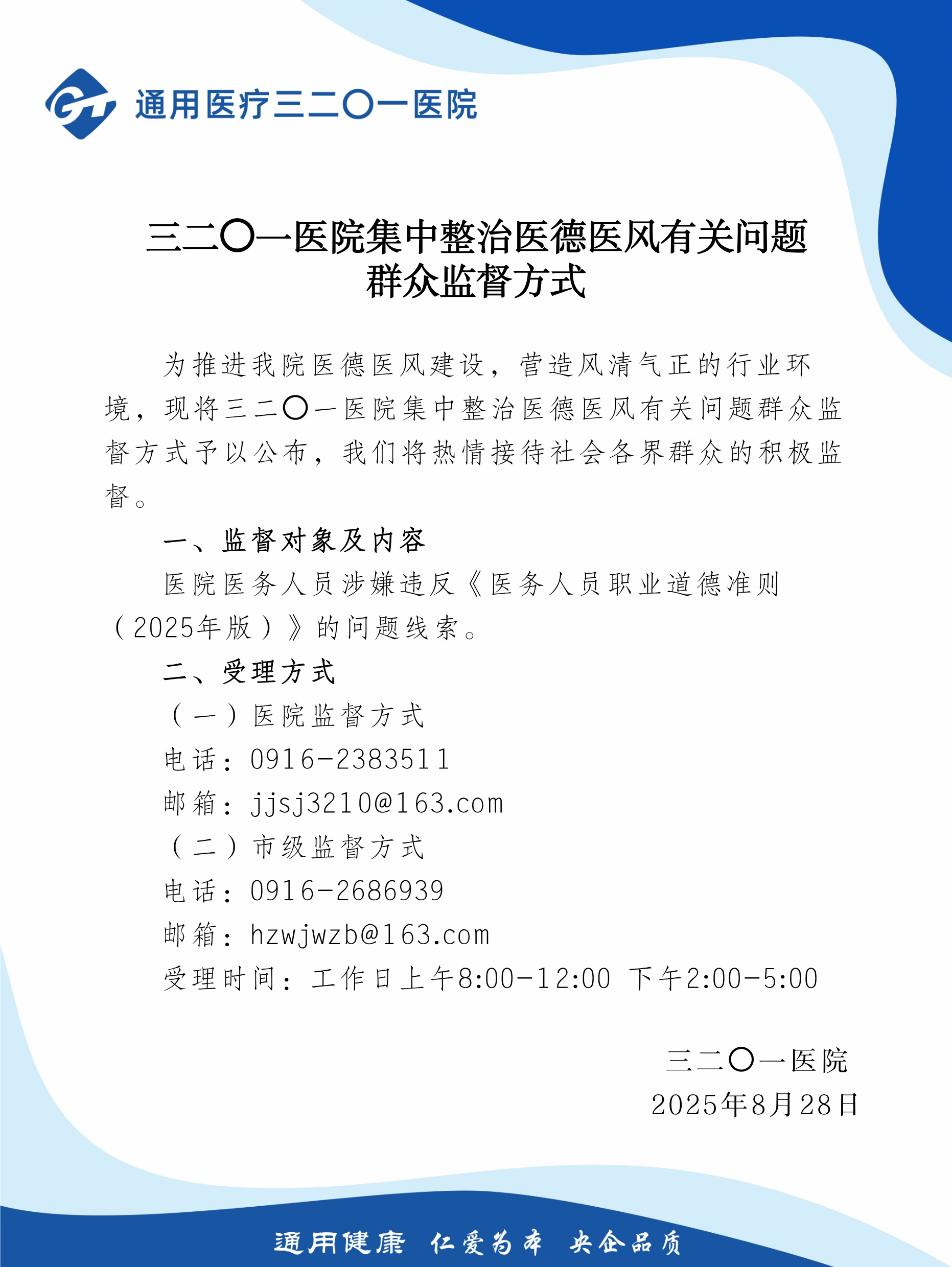三二〇一医院集中整治医德医风有关问题群众监督方式