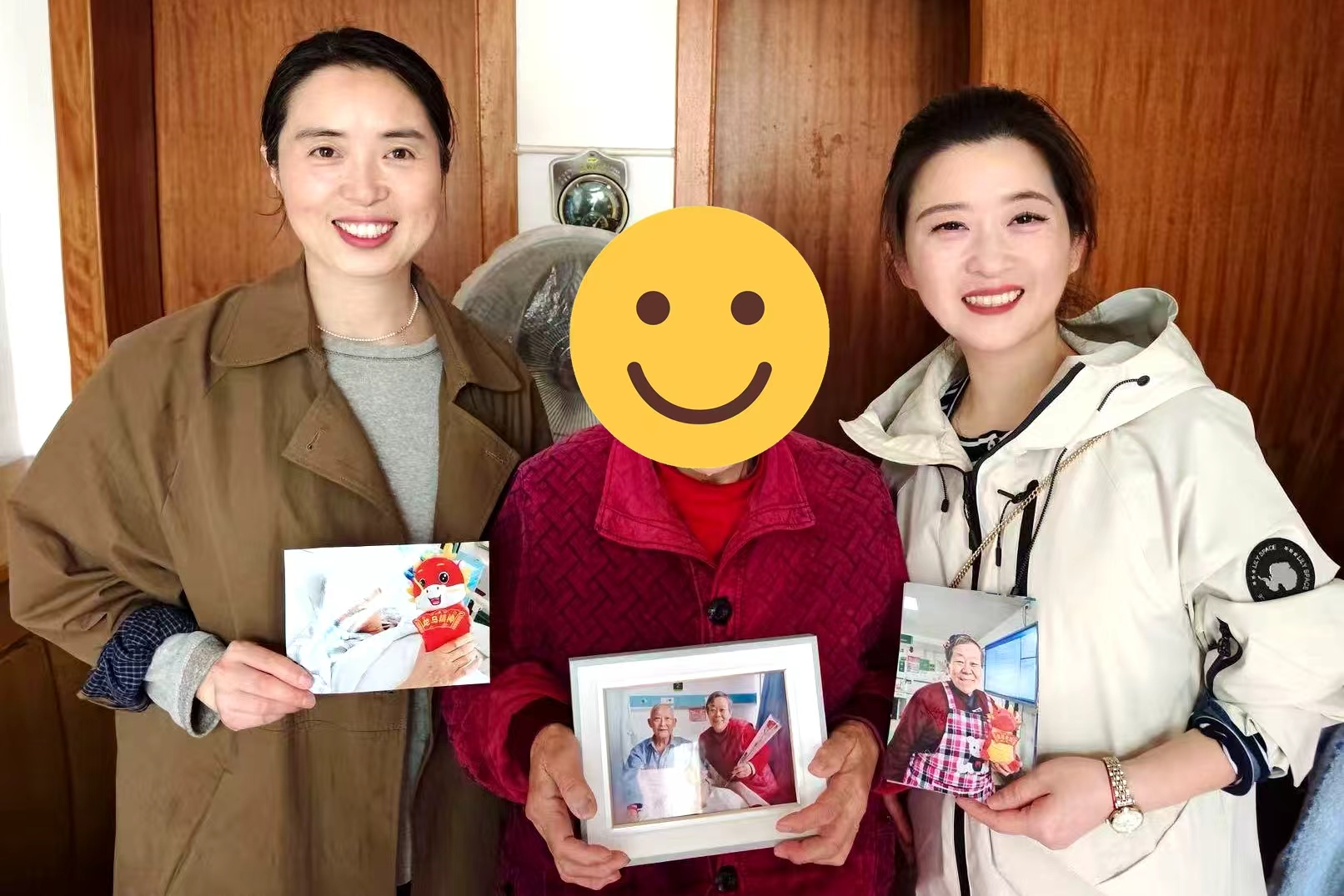 临走,她又塞给我们好多吃的,并向护士长讨一张她特别喜欢的合影。我们都笑了,约定下次再来看这位可爱的老太太。